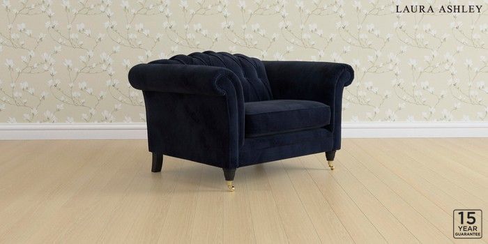 6.12.1 Buy Gloucester Button Back by Laura Ashley Snuggle Orla Midnight Navy Low Brass Castor - Black from the Next UK online shop Click here to use our accessible website
