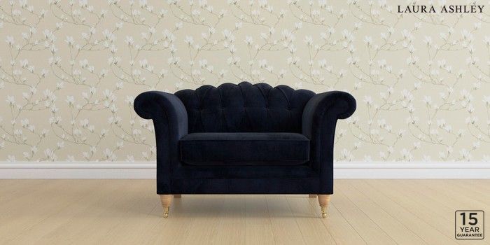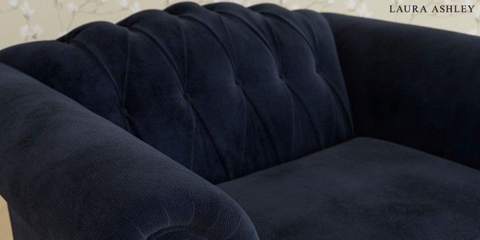 6.12.1 Buy Gloucester Button Back by Laura Ashley Snuggle Orla Midnight Navy Low Brass Castor - Light Oak from the Next UK online shop Click here to use our accessible website