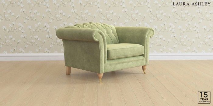6.12.1 Buy Gloucester Button Back by Laura Ashley Snuggle Orla Pale Hedgerow Green Low Brass Castor - Light Oak from the Next UK online shop Click here to use our accessible website