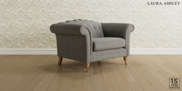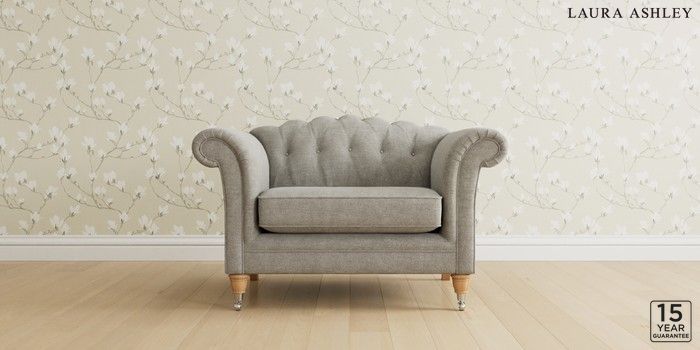 6.12.1 Buy Gloucester Button Back by Laura Ashley Snuggle Orla Pale Steel Grey Low Chrome Castor - Light Oak from the Next UK online shop Click here to use our accessible website