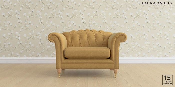 6.12.1 Buy Gloucester Button Back by Laura Ashley Snuggle Peyton Ochre Yellow Low Brass Castor - Light Oak from the Next UK online shop Click here to use our accessible website