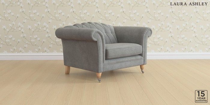 6.12.1 Buy Gloucester Button Back by Laura Ashley Snuggle Wooton Dark Steel Grey Low Chrome Castor - Light Oak from the Next UK online shop Click here to use our accessible website