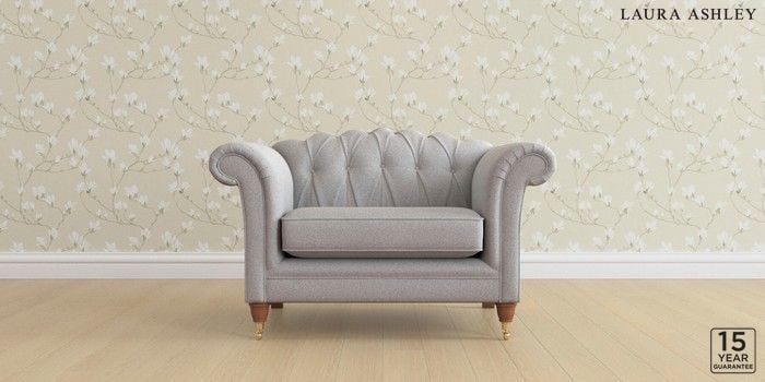 6.12.1 Buy Gloucester Button Back by Laura Ashley Snuggle Wooton Pale Steel Grey Low Brass Castor - Teak from the Next UK online shop Click here to use our accessible website