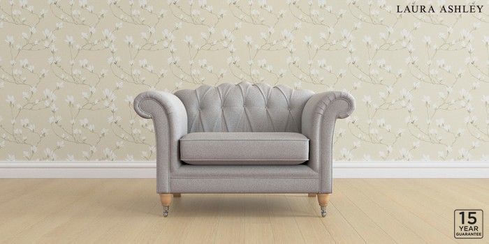 6.12.1 Buy Gloucester Button Back by Laura Ashley Snuggle Wooton Pale Steel Grey Low Chrome Castor - Light Oak from the Next UK online shop Click here to use our accessible website