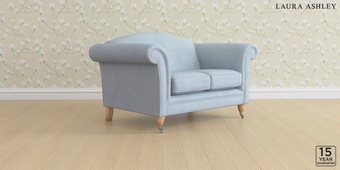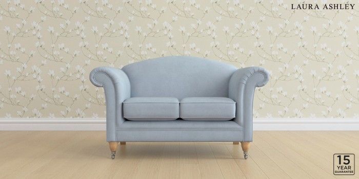 6.12.13 Buy Gloucester by Laura Ashley 2 Seater Small Sofa Ailsworth Newport Blue Low Chrome Castor - Light Oak from the Next UK online shop Click here to use our accessible website