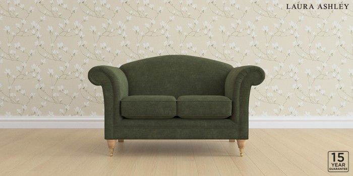 6.12.1 Buy Gloucester by Laura Ashley 2 Seater Small Sofa Alwyn Velvet Ivy Green Low Brass Castor - Light Oak from the Next UK online shop Click here to use our accessible website