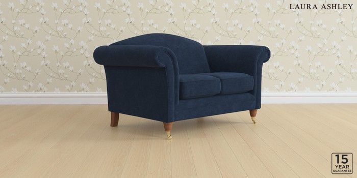 6.12.1 Buy Gloucester by Laura Ashley 2 Seater Small Sofa Alwyn Velvet Midnight Navy Low Brass Castor - Teak from the Next UK online shop Click here to use our accessible website