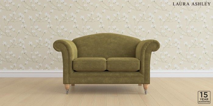 6.12.1 Buy Gloucester by Laura Ashley 2 Seater Small Sofa Alwyn Velvet Olive Green Low Chrome Castor - Light Oak from the Next UK online shop Click here to use our accessible website