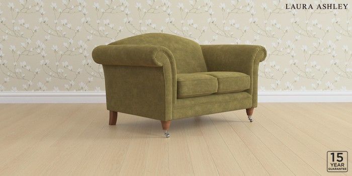 6.12.1 Buy Gloucester by Laura Ashley 2 Seater Small Sofa Alwyn Velvet Olive Green Low Chrome Castor - Teak from the Next UK online shop Click here to use our accessible website