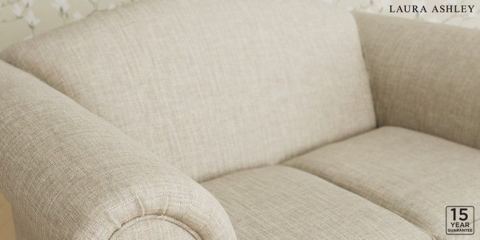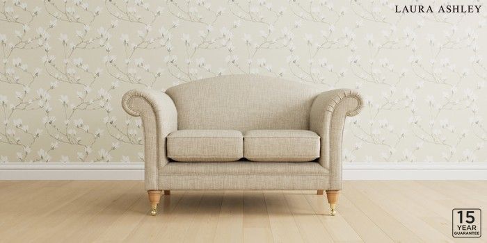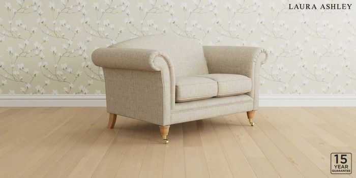 6.12.1 Buy Gloucester by Laura Ashley 2 Seater Small Sofa Bainton Natural Low Brass Castor - Light Oak from the Next UK online shop Click here to use our accessible website