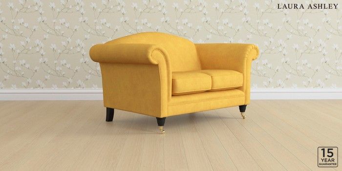 6.12.1 Buy Gloucester by Laura Ashley 2 Seater Small Sofa Bainton Ochre Yellow Low Brass Castor - Black from the Next UK online shop Click here to use our accessible website