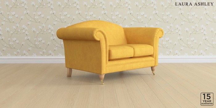 6.12.1 Buy Gloucester by Laura Ashley 2 Seater Small Sofa Bainton Ochre Yellow Low Brass Castor - Light Oak from the Next UK online shop Click here to use our accessible website