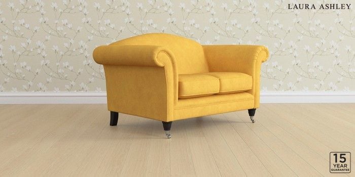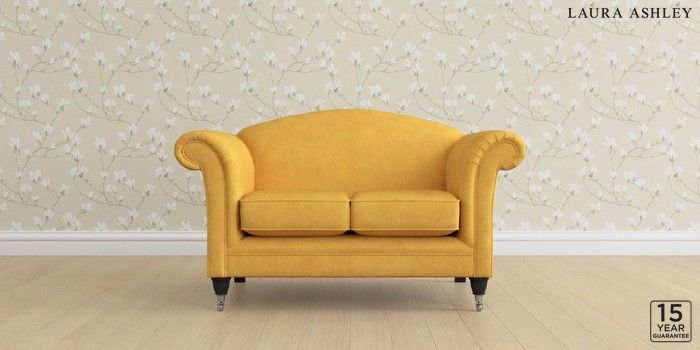 6.12.1 Buy Gloucester by Laura Ashley 2 Seater Small Sofa Bainton Ochre Yellow Low Chrome Castor - Black from the Next UK online shop Click here to use our accessible website