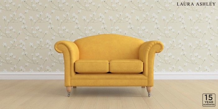6.12.1 Buy Gloucester by Laura Ashley 2 Seater Small Sofa Bainton Ochre Yellow Low Chrome Castor - Light Oak from the Next UK online shop Click here to use our accessible website