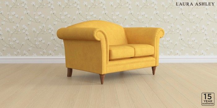 6.12.1 Buy Gloucester by Laura Ashley 2 Seater Small Sofa Bainton Ochre Yellow Low Turned - Teak from the Next UK online shop Click here to use our accessible website