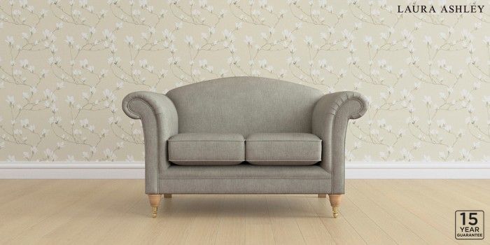 6.12.1 Buy Gloucester by Laura Ashley 2 Seater Small Sofa Bainton Pale Steel Grey Low Brass Castor - Light Oak from the Next UK online shop Click here to use our accessible website