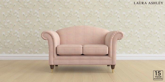 6.12.1 Buy Gloucester by Laura Ashley 2 Seater Small Sofa Edwin Chenille Blush Pink Low Brass Castor - Chestnut from the Next UK online shop Click here to use our accessible website