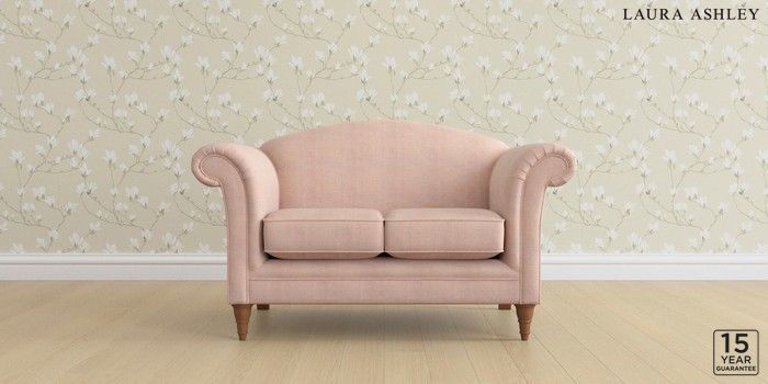 6.12.1 Buy Gloucester by Laura Ashley 2 Seater Small Sofa Edwin Chenille Blush Pink Low Turned - Teak from the Next UK online shop Click here to use our accessible website