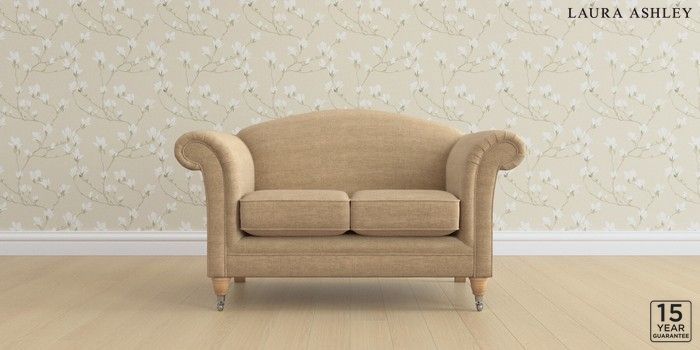 6.12.1 Buy Gloucester by Laura Ashley 2 Seater Small Sofa Edwin Chenille Gold Natural Low Chrome Castor - Light Oak from the Next UK online shop Click here to use our accessible website