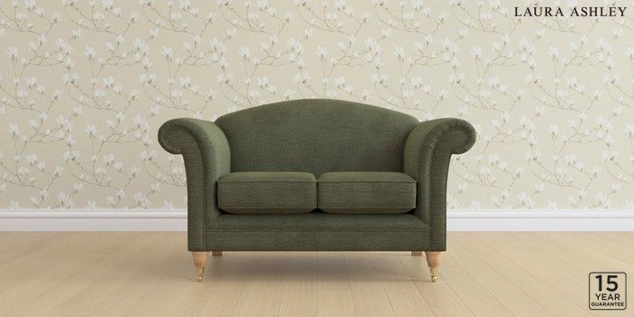 6.12.13 Buy Gloucester by Laura Ashley 2 Seater Small Sofa Edwin Chenille Hedgerow Green Low Brass Castor - Light Oak from the Next UK online shop Click here to use our accessible website