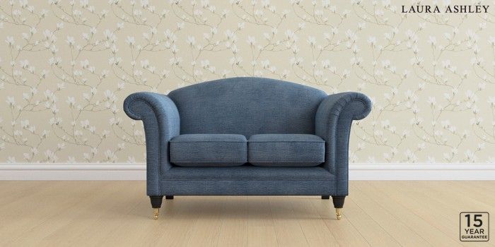 6.12.1 Buy Gloucester by Laura Ashley 2 Seater Small Sofa Edwin Chenille Seaspray Blue Low Brass Castor - Black from the Next UK online shop Click here to use our accessible website