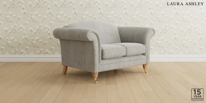 6.12.1 Buy Gloucester by Laura Ashley 2 Seater Small Sofa Edwin Chenille Silver Grey Low Brass Castor - Light Oak from the Next UK online shop Click here to use our accessible website
