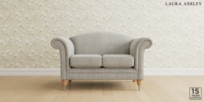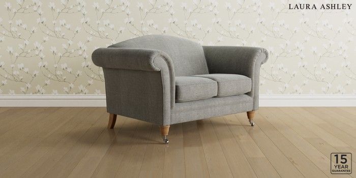 6.12.1 Buy Gloucester by Laura Ashley 2 Seater Small Sofa Edwin Chenille Silver Grey Low Chrome Castor - Light Oak from the Next UK online shop Click here to use our accessible website