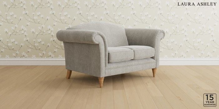 6.12.1 Buy Gloucester by Laura Ashley 2 Seater Small Sofa Edwin Chenille Silver Grey Low Turned - Light Oak from the Next UK online shop Click here to use our accessible website