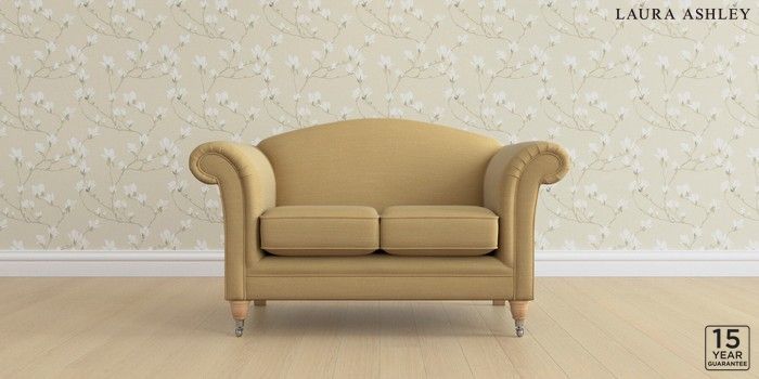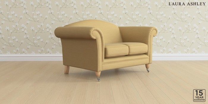 6.12.13 Buy Gloucester by Laura Ashley 2 Seater Small Sofa Kinsham Ochre Yellow Low Chrome Castor - Light Oak from the Next UK online shop Click here to use our accessible website