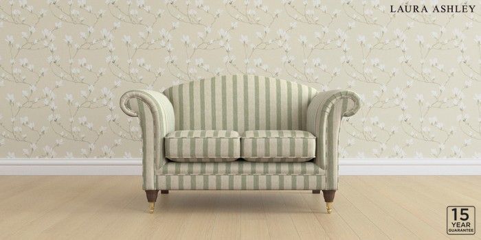 6.12.13 Buy Gloucester by Laura Ashley 2 Seater Small Sofa Kinsham Stripe Hedgerow Green Low Brass Castor - Chestnut from the Next UK online shop Click here to use our accessible website