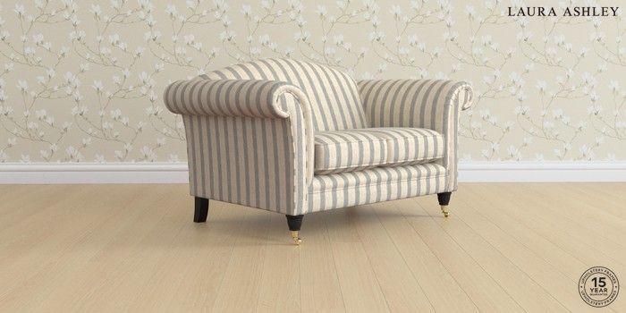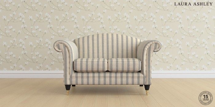 6.12.1 Buy Gloucester by Laura Ashley 2 Seater Small Sofa Kinsham Stripe Seaspray Blue Low Brass Castor - Black from the Next UK online shop Click here to use our accessible website