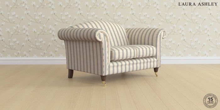 6.12.1 Buy Gloucester by Laura Ashley 2 Seater Small Sofa Kinsham Stripe Seaspray Blue Low Brass Castor - Chestnut from the Next UK online shop Click here to use our accessible website