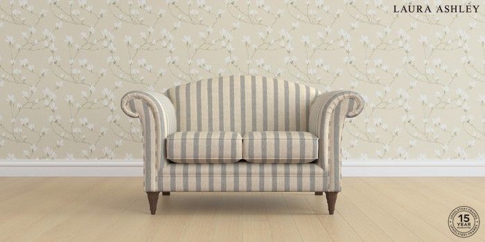 6.12.1 Buy Gloucester by Laura Ashley 2 Seater Small Sofa Kinsham Stripe Seaspray Blue Low Turned - Chestnut from the Next UK online shop Click here to use our accessible website