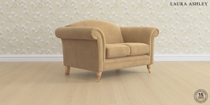 6.12.1 Buy Gloucester by Laura Ashley 2 Seater Small Sofa Lundar Chenille Caramel Natural Low Brass Castor - Light Oak from the Next UK online shop Click here to use our accessible website