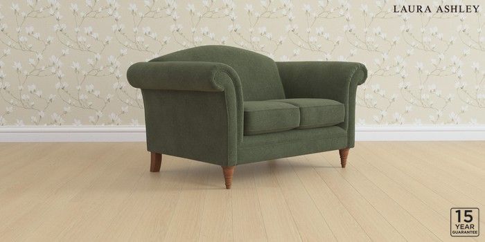6.12.13 Buy Gloucester by Laura Ashley 2 Seater Small Sofa Lundar Chenille Ivy Green Low Turned - Teak from the Next UK online shop Click here to use our accessible website