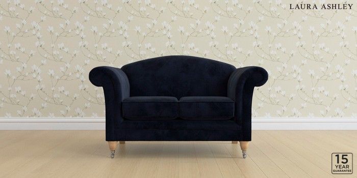 6.12.13 Buy Gloucester by Laura Ashley 2 Seater Small Sofa Orla Midnight Navy Low Chrome Castor - Light Oak from the Next UK online shop Click here to use our accessible website