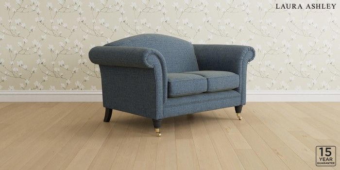 6.12.1 Buy Gloucester by Laura Ashley 2 Seater Small Sofa Orla Seaspray Blue Low Brass Castor - Black from the Next UK online shop Click here to use our accessible website