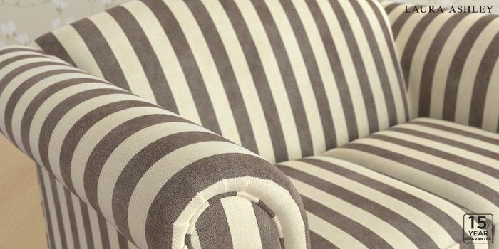 6.12.13 Buy Gloucester by Laura Ashley 2 Seater Small Sofa Orla Stripe Dark Truffle Natural Low Brass Castor - Black from the Next UK online shop Click here to use our accessible website