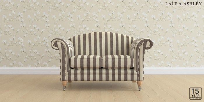 6.12.13 Buy Gloucester by Laura Ashley 2 Seater Small Sofa Orla Stripe Dark Truffle Natural Low Chrome Castor - Light Oak from the Next UK online shop Click here to use our accessible website