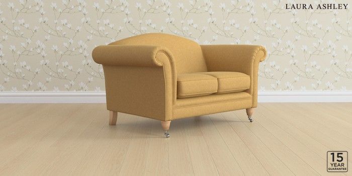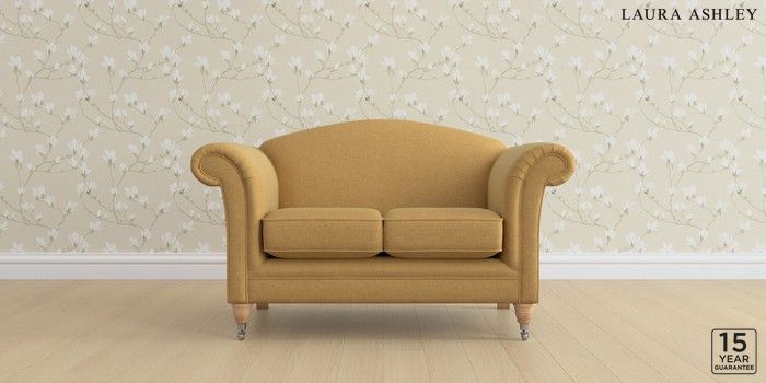 6.12.13 Buy Gloucester by Laura Ashley 2 Seater Small Sofa Peyton Ochre Yellow Low Chrome Castor - Light Oak from the Next UK online shop Click here to use our accessible website