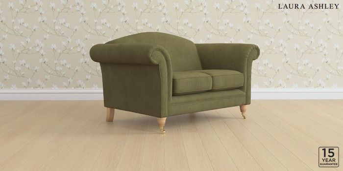 6.12.1 Buy Gloucester by Laura Ashley 2 Seater Small Sofa Sinclair Cord Ivy Green Low Brass Castor - Light Oak from the Next UK online shop Click here to use our accessible website