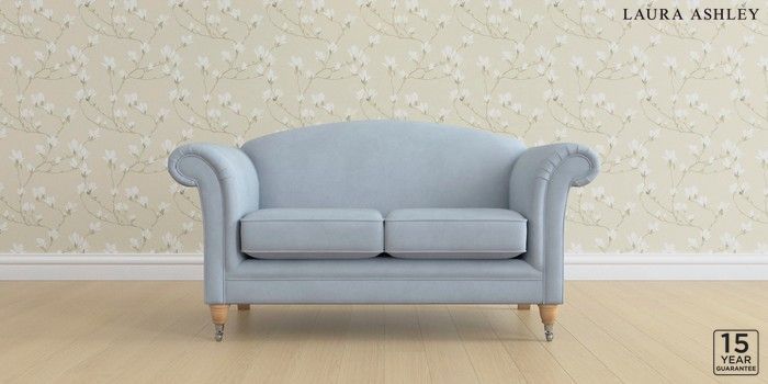 6.12.13 Buy Gloucester by Laura Ashley 2 Seater Sofa Ailsworth Newport Blue Low Chrome Castor - Light Oak from the Next UK online shop Click here to use our accessible website