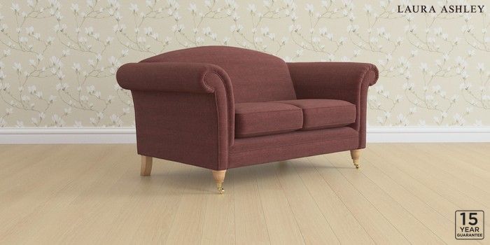 6.12.1 Buy Gloucester by Laura Ashley 2 Seater Sofa Edwin Chenille Burgundy Red Low Brass Castor - Light Oak from the Next UK online shop Click here to use our accessible website