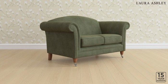 6.12.13 Buy Gloucester by Laura Ashley 2 Seater Sofa Edwin Chenille Hedgerow Green Low Chrome Castor - Teak from the Next UK online shop Click here to use our accessible website