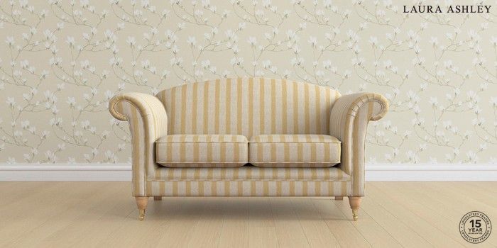 7.0.3 Buy Gloucester by Laura Ashley 2 Seater Sofa Kinsham Stripe Ochre Yellow Low Brass Castor - Light Oak from the Next UK online shop Click here to use our accessible website