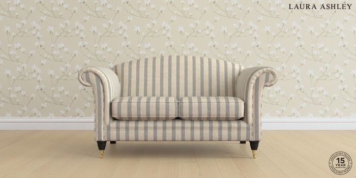 6.12.1 Buy Gloucester by Laura Ashley 2 Seater Sofa Kinsham Stripe Seaspray Blue Low Brass Castor - Black from the Next UK online shop Click here to use our accessible website