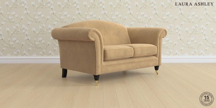 6.12.1 Buy Gloucester by Laura Ashley 2 Seater Sofa Lundar Chenille Caramel Natural Low Brass Castor - Black from the Next UK online shop Click here to use our accessible website