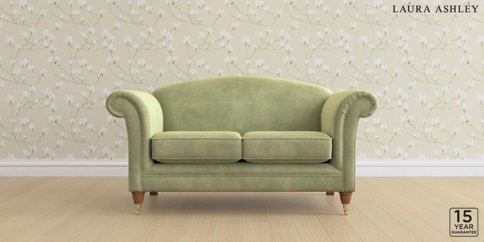 6.12.1 Buy Gloucester by Laura Ashley 2 Seater Sofa Orla Pale Hedgerow Green Low Brass Castor - Teak from the Next UK online shop Click here to use our accessible website