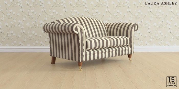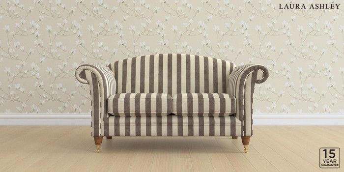 6.12.13 Buy Gloucester by Laura Ashley 2 Seater Sofa Orla Stripe Dark Truffle Natural Low Brass Castor - Teak from the Next UK online shop Click here to use our accessible website