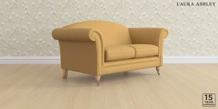6.12.13 Buy Gloucester by Laura Ashley 2 Seater Sofa Peyton Ochre Yellow Low Chrome Castor - Light Oak from the Next UK online shop Click here to use our accessible website